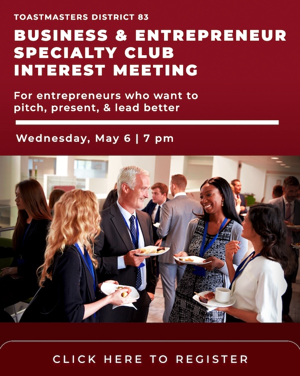 The information on this Web site is for the sole use of Toastmasters’ members, for Toastmasters business only. It is not to be used for solicitation and distribution of non-Toastmasters material or information. The names “Toastmasters International,” “Toastmasters,” and the Toastmasters International emblem are trademarks protected in the United States, Canada and other countries where Toastmasters clubs exist. Unauthorized use is prohibited.